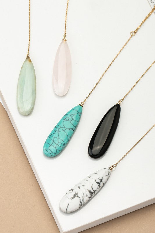 LONG OVAL NATURAL STONE PENDANT Y SHAPE NECKLACE